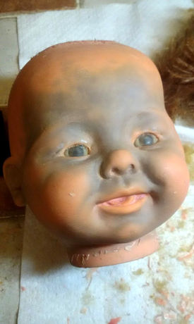 Si procedeva alla cancellazione del volto originale della bambola, cioè eliminandone i principali tratti dipinti come occhi, ciglia, sopracciglia, bocca ecc.